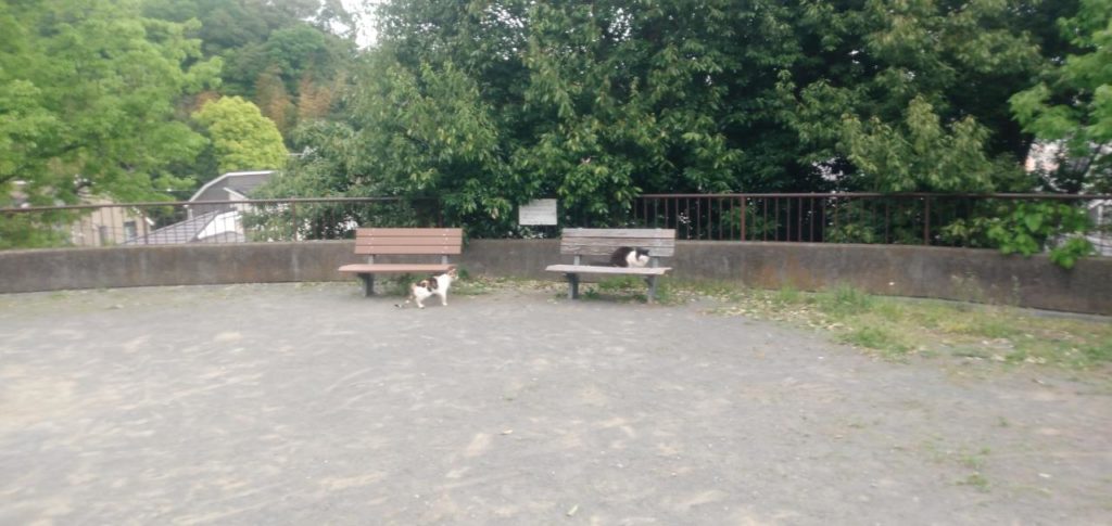 ぬこぉ🐈🐈🐈🐈🐈合計5匹発見。人慣れしている。餌付けされてんの???耳カットされている猫は去勢済みであるっていう張り紙がでているので、そういう野良捨て猫なのかな???横長の広い公園だった。帰路へ。アップダウンのあるしっかりした散歩になった。