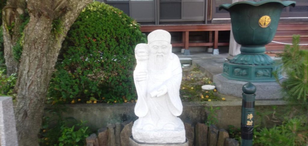 7:00前散歩。目的地はお寺。美白な寿老人像をパシャリ!7:30帰宅。